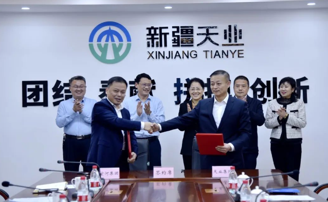 市委副書記、市長王建文見證協(xié)議簽署并致辭,市政協(xié)黨組成員、副主席、財政局黨委書記、局長張亮,市政府辦公室、稅務局、國企發(fā)展服務中心主要負責人參加活動。天業(yè)集團黨委書記、董事長宋曉玲,黨委副書記、總經(jīng)理周軍,首席法律顧問楊湘見證協(xié)議簽署。 (4月19日,在新疆天業(yè)集團,宏河集團黨委書記、董事長李曉東與天阜新業(yè)董事長歷建林簽署合作協(xié)議。)