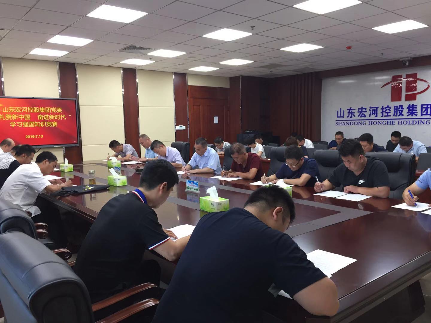 為弘揚(yáng)愛(ài)國(guó)主義精神和民族精神,扎實(shí)做好“學(xué)習(xí)強(qiáng)國(guó)”學(xué)習(xí)平臺(tái)的使用和推廣,認(rèn)真學(xué)習(xí)貫徹習(xí)近平新時(shí)代中國(guó)特色社會(huì)主義思想和十九大精神,依據(jù)鄒宣發(fā)【2019】9號(hào)文精神和財(cái)政局黨委要求,宏河集團(tuán)7月13日下午在集團(tuán)總部大廈舉行“禮贊新中國(guó)奮進(jìn)新時(shí)代”學(xué)習(xí)強(qiáng)國(guó)知識(shí)競(jìng)賽決賽。 知識(shí)競(jìng)賽從6月份開(kāi)始,集團(tuán)黨委下屬各基層黨支部經(jīng)過(guò)初賽選拔,各黨支部推薦1-2人,共計(jì)29人參加集團(tuán)黨委決賽。本次比賽采用書(shū)面答題方式進(jìn)行,內(nèi)容按全部來(lái)自于學(xué)習(xí)強(qiáng)國(guó)知識(shí)競(jìng)賽題庫(kù)。